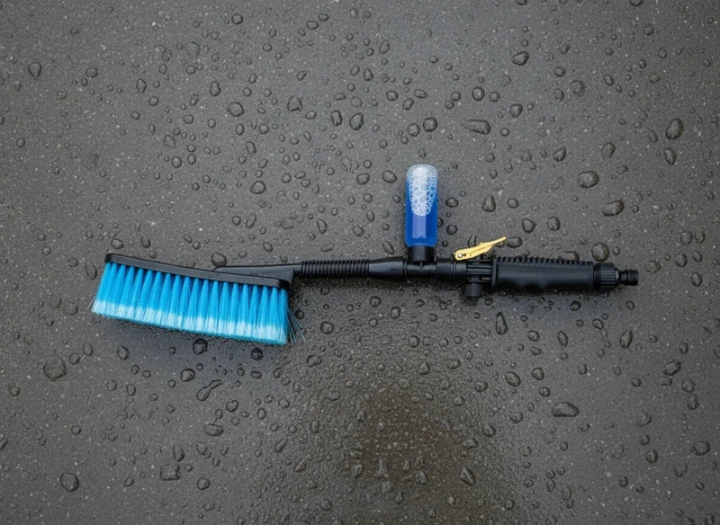 Imagina decir adiós a horas frotando. Este cepillo se conecta directo a tu manguera y aplica el jabón, dejando tu auto impecable en minutos. ¡Más tiempo para ti!