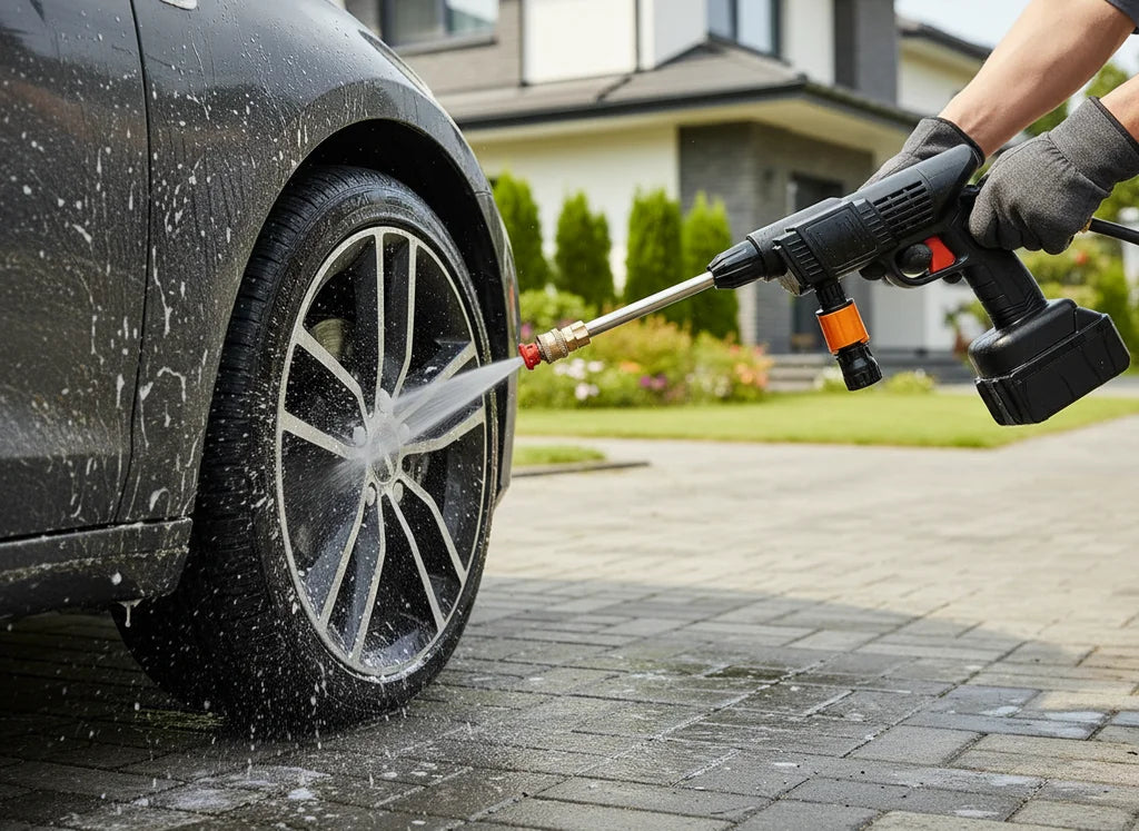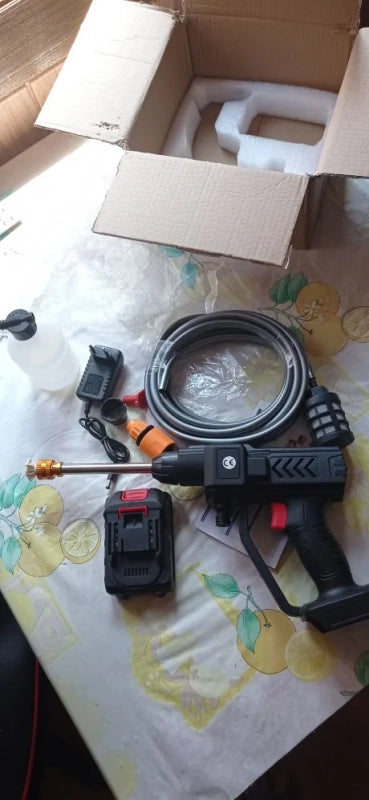 Imagina limpiar tu patio sin buscar enchufes. Con esta pistola inalámbrica, la libertad es tuya. ¡Tu hogar siempre brillante!