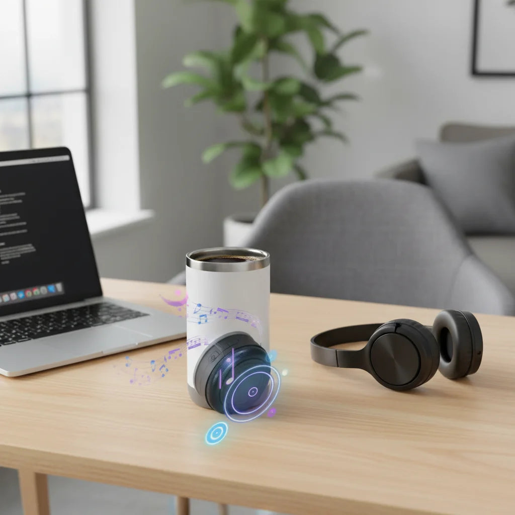 Mantén tu bebida perfecta y tu música favorita sonando. Este vaso térmico con altavoz bluetooth es el compañero ideal para tu ritmo de vida moderno. ¡Nunca te quedes sin tu banda sonora!