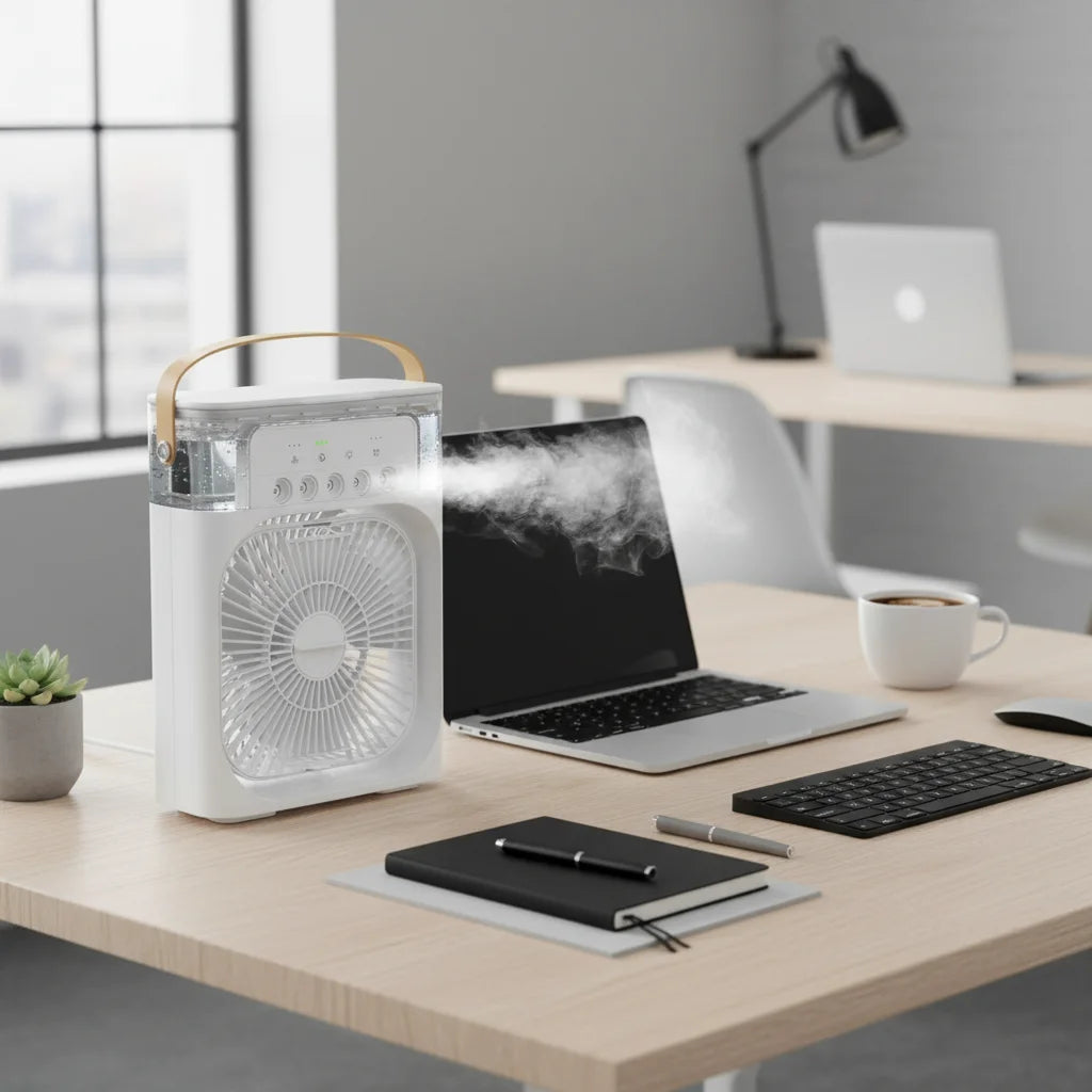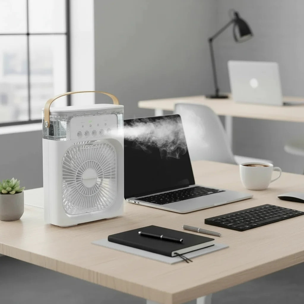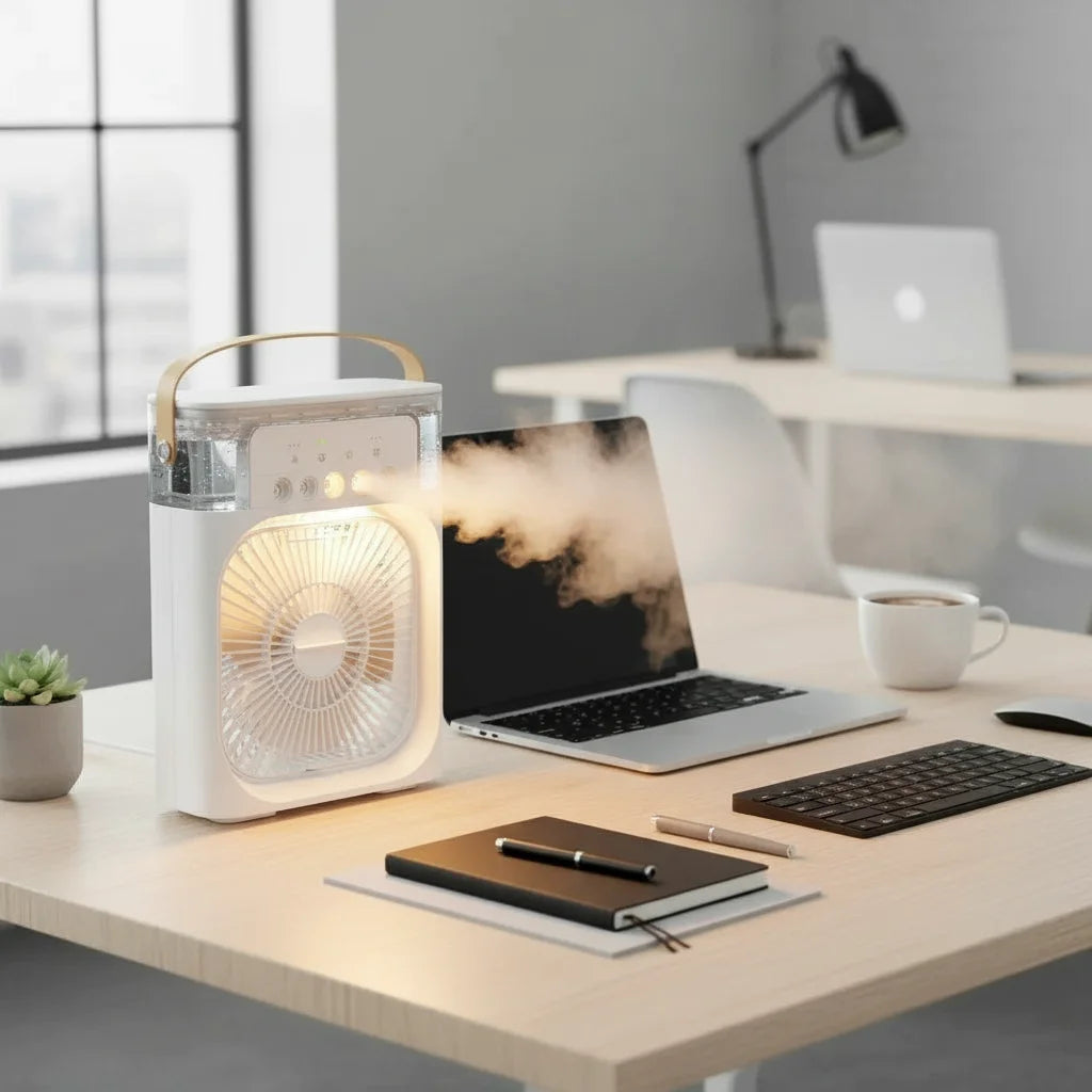 ¿Cansado del calor y el aire seco en casa? Transforma tu espacio en un refugio de confort con nuestro ventilador humidificador. ¡Doble frescura al instante!